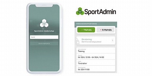 Ladda gärna ner SportAdmins medlemsapp, där kan ni logga in med er mail och ta emot information samt klicka i om ni kommer på träningen eller inte, det underlättar för oss ledare.